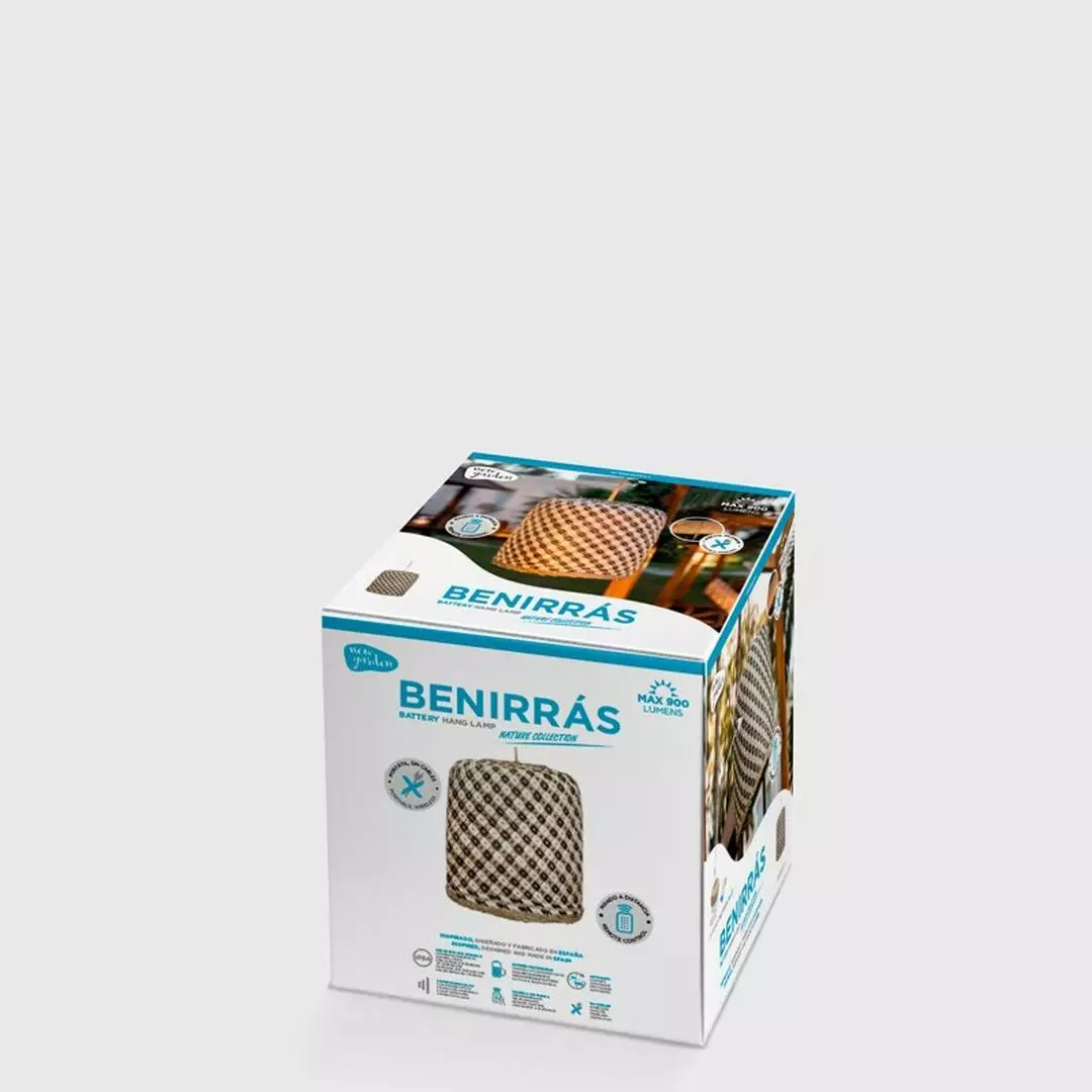 La lampe suspendue sans cable BENIRRÁS est fabriquée à la main à partir de fibres naturelles.